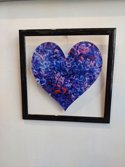 plexi glass heart printed with Hebrew letters print