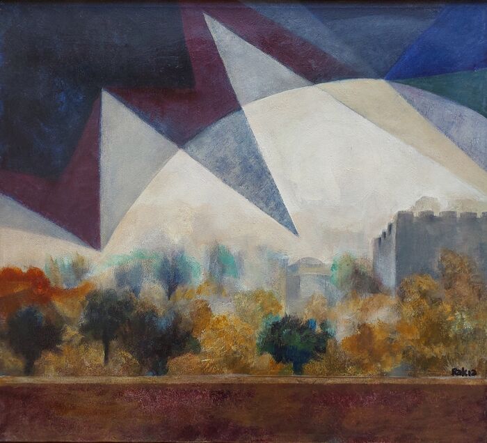 Jerusalem meeting the cosmos , made in 1988 oil on canvas 50x45 cm
